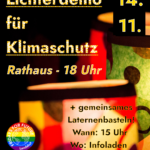 Schnappt euch gern eure alten Martinslaternen, Lichterketten, Rentiergeweihe und sonst noch was leuchtet. Lasst uns die Landshuter Nacht zum Tag machen. Notfalls sind Handytaschenlampen auch okay 😉 Kommt also gern auf unsere Lichterdemo: 📅 Datum: 14.11.25 🕑 Uhrzeit: 18 Uhr 📍 Ort: Rathaus - Globaler Klimastreik am 20.09.2025